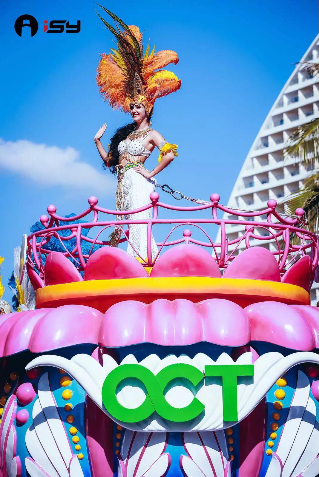 “炫動三亞”花車和“絲路情長”花車,是由海南華僑城文化演藝有限公司特別提供。“炫動三亞”彰顯著三亞獨有的旅游人文特色;“絲路情長”則代表著三亞所肩負的作為“一帶一路”重要支點城市的重要責任。