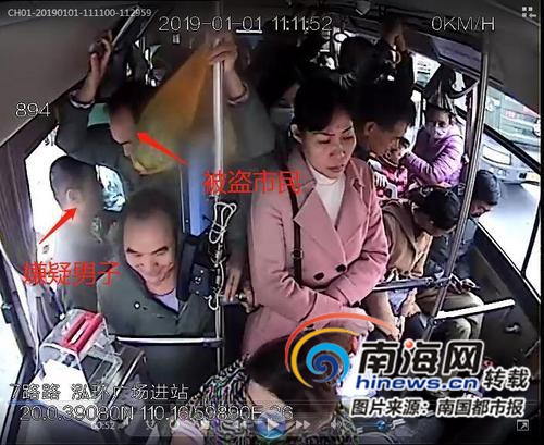海口一市民乘7路公交車時遭遇小偷