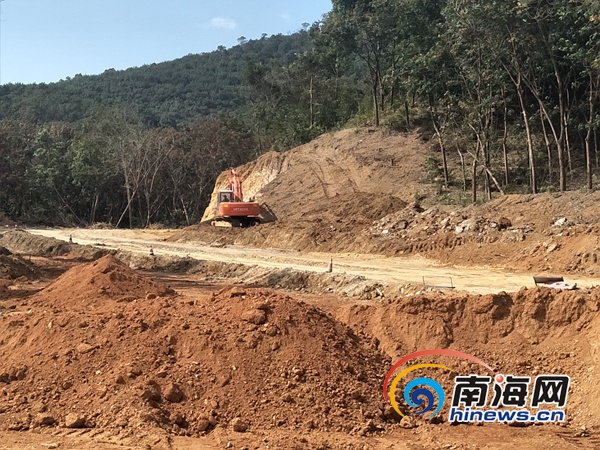 ?木排至蘭洋旅游公路,挖掘機正在清表整平路基。 南海網記者 王全印 攝