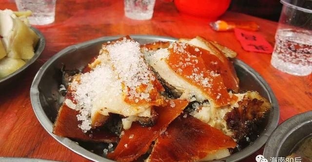 烤乳豬是海南本特罕見的菜肴,在許多結(jié)婚宴席上都能見到。而粉嫩的乳豬會(huì)灑些白糖,聽婚宴師父說(shuō)這么搭配能夠增加清淡,吃起來(lái)爽口。