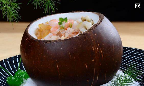 椰子飯 當細糯的米香遇上清淡的椰子,就誕生了椰子飯,光是聽到名字就覺得香甜可口。在海口,食用此種以椰子肉為底的船形小食品,是當地人民祈求幸福的象征,也是宴請貴賓和親朋好友的上等佳品。所以到海口的游客都會嘗嘗這味道和寓意都極好又極具特色的椰子飯