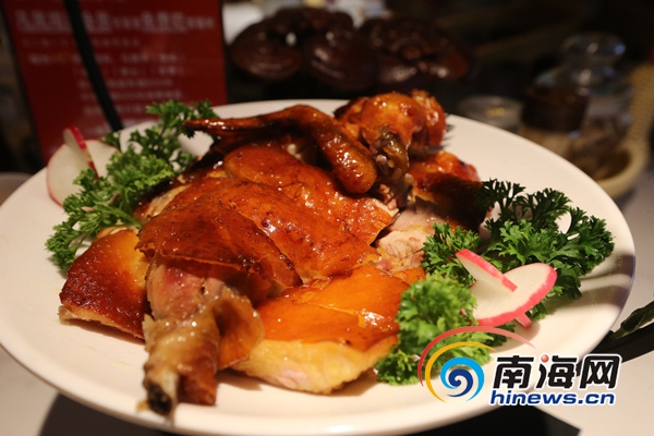 凡鳳雞道的炭火秘汁燒靈芝雞。 南海網記者陳望 攝