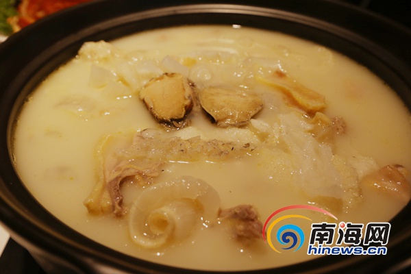 凡鳳雞道的刺魚鮑魚靈芝雞湯。 南海網記者陳望 攝