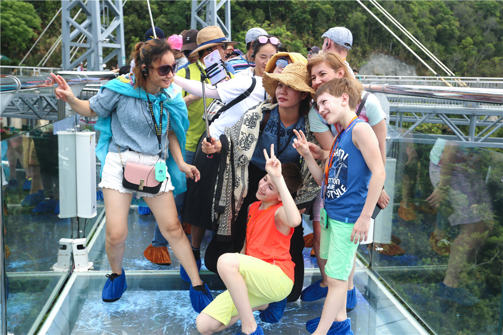 “我們從東方過來的,這次和家人朋友們專門過來玩這個玻璃平臺!”在分享之余,來自海南東方的符女士還熱情邀約身旁的俄羅斯游客一同合影留念。