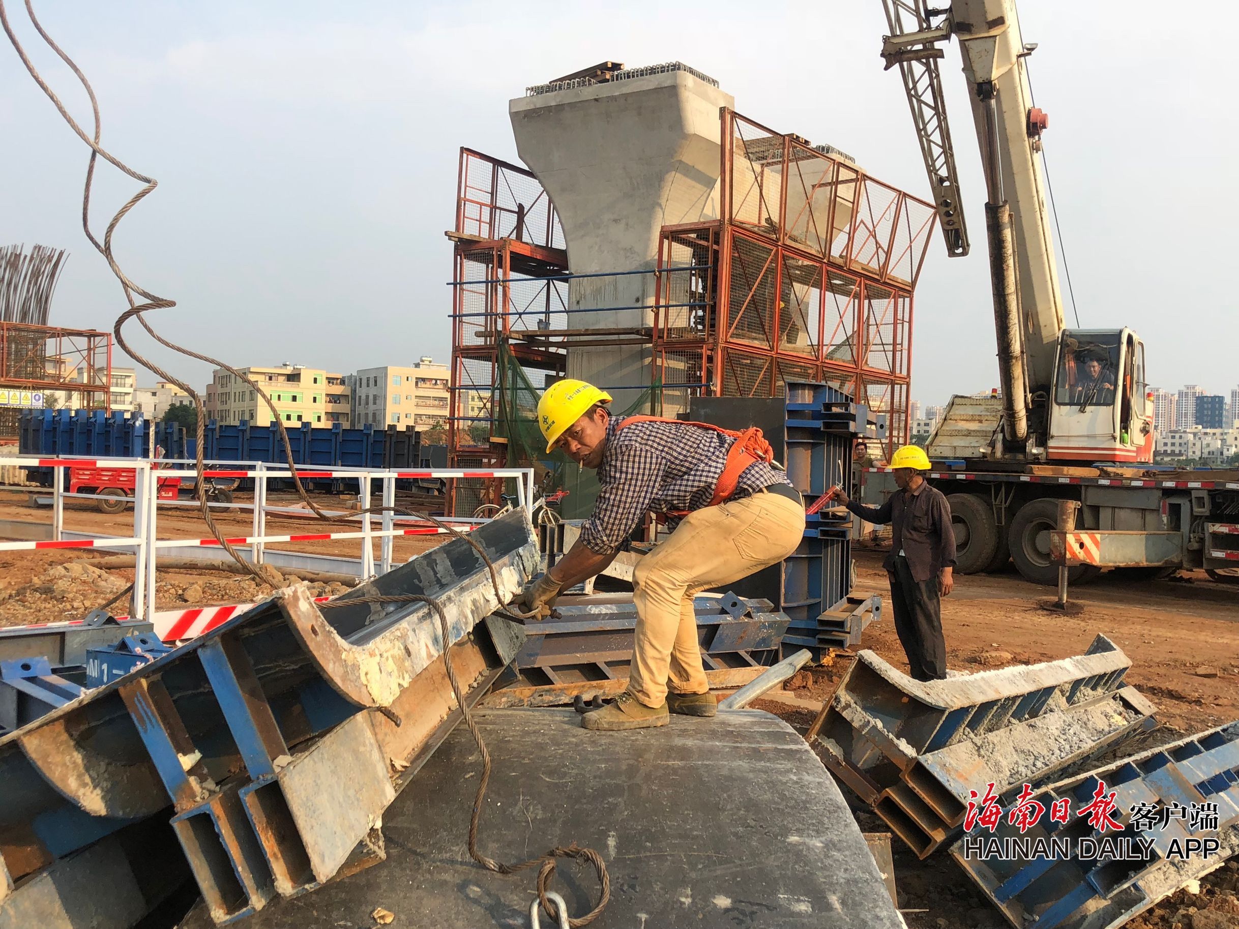 “目前改建段的樁基施工已基本完成,正在進行橋梁下部施工。”快速路(二期)項目經(jīng)理劉浩告訴海南日報記者,為了確保明年4月13日主橋通車的目標,快速路(二期)項目增加了許多新工藝。