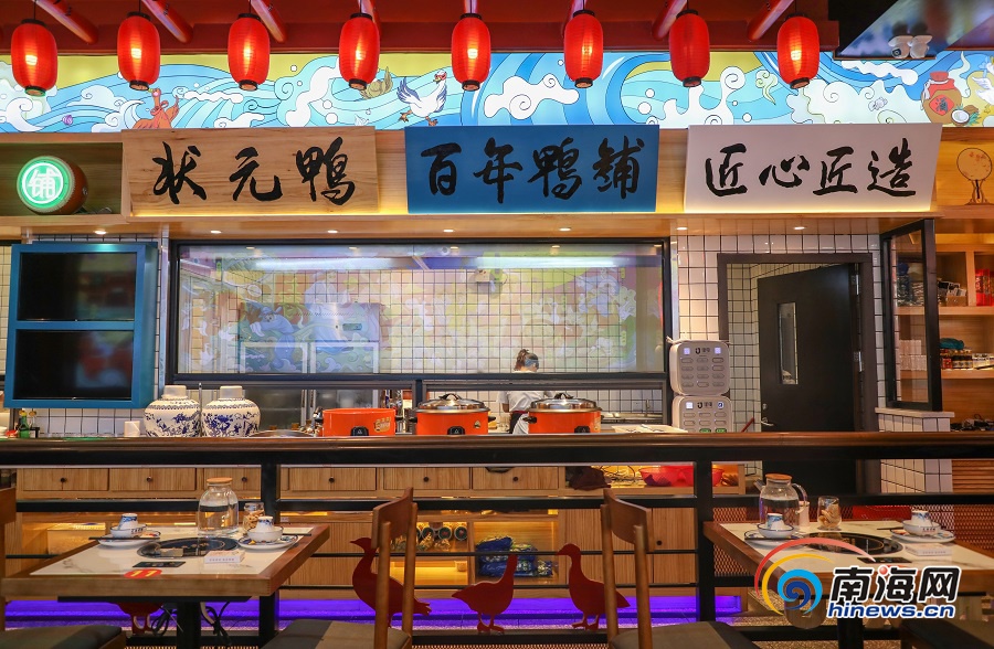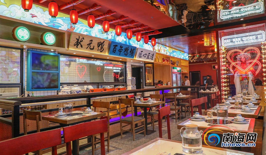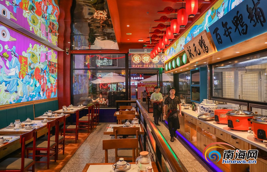 南海網(wǎng)、南海網(wǎng)客戶端???月7日消息(南海網(wǎng)記者 任桐)夜幕降臨,位于??谑行阌^(qū)尋嘗里夜市的文秀煮鴨開始迎接晚上的顧客。這是一家獨(dú)具特色的餐館,這種特色從表及里,從裝修到菜品;這也是一家有情懷的餐館,瓊戲主題、海南菜品,處處體現(xiàn)著店主人濃濃的海南情結(jié)。