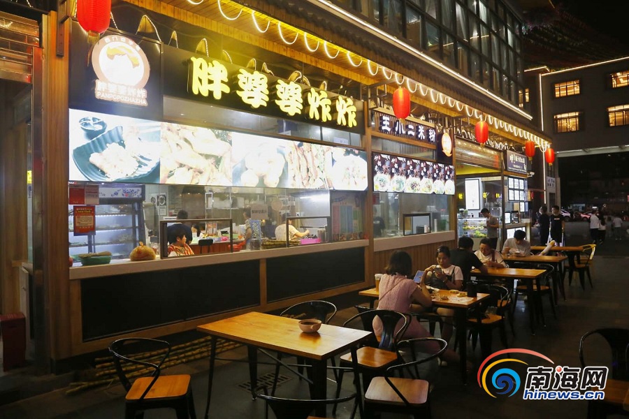 “母親一直想繼續(xù)賣炸炸,很多老顧客也在找我們,但一直沒有找到合適的門店。”張茹說(shuō),直到她聽說(shuō)了秀英區(qū)要打造“雙創(chuàng)”重點(diǎn)項(xiàng)目——尋常里夜市,母親便在這里租了一個(gè)小門面,重新張羅起了炸炸生意,并給店鋪取名為“胖婆婆炸炸”。