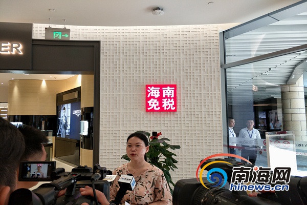 游客在海口日月廣場(chǎng)免稅店購(gòu)物后談體驗(yàn),南海網(wǎng)記者 孫令正 攝