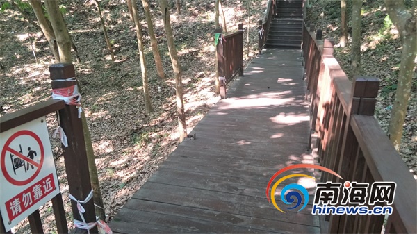 通往儋陽樓的木棧道損壞,建設單位什么時候進行修復?對此,南海網記者采訪了儋州文旅公司有關負責人盛云。盛云稱,儋陽樓木棧道損壞的事情該公司已經知曉,已經在著手進行處理,并在棧道入口處設立告示牌,禁止市民步入。