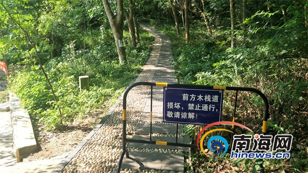 通往儋陽樓的木棧道損壞嚴重。南海網見習記者 李紹遠 攝