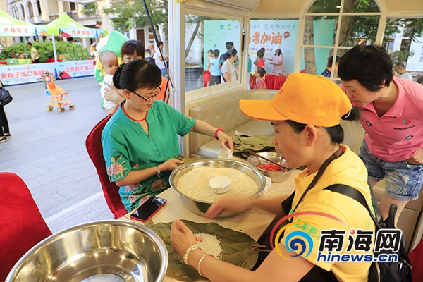 市民紛紛在粽子工坊體驗親手包粽子。南海網(wǎng)記者 黃祥 攝