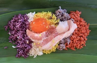 后靠村的彩虹棕是在三色飯的基礎上,經過改良后精制而成的粽子,相比三色飯,其既保留了三色飯的艷麗色彩和營養價值,更加衛生,更加美味。粽子內部的五谷雜糧經過更加科學的烹煮,便于人們攝取和吸收其中的營養。