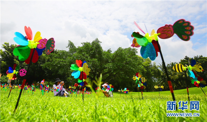 資料圖:家長帶孩子在三亞南山景區風車谷上游玩。新華網發