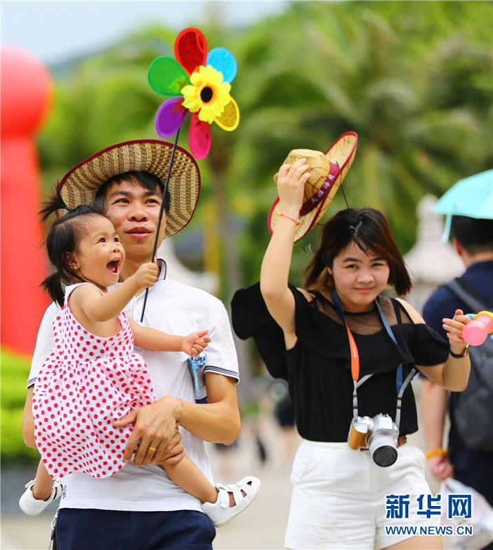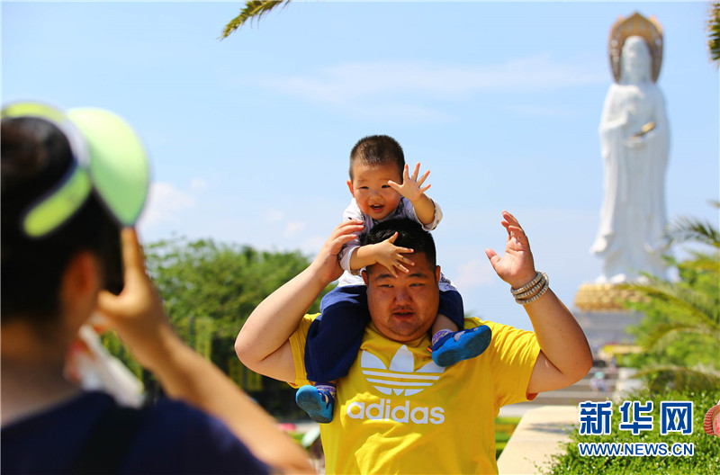 資料圖:家長帶孩子在三亞南山景區游覽。新華網發