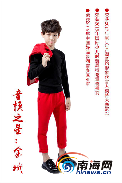 金斌,12歲,身高142,曾是體育生的他學習少兒模特已有1年時間,1年來他也曾在各大賽事中斬獲桂冠,隨后開始嘗試一些廣告、電視劇等拍攝活動,舞臺表現力越來越好。
