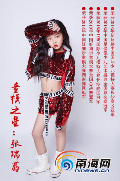 張瑞茜,9歲,身高138cm,學習少兒模特1年多,她有著屬于自己的風格和氣場,曾獲中國星偶像少兒模特全國冠軍、中國好貓步全國亞軍/湖南冠軍、IKMC國際少兒模特大賽湖南冠軍、新絲路湖南亞軍、亞童超模大賽亞軍等各類獎項。