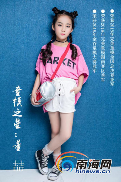 董喆,9歲,身高142 ,從一個走路姿勢內八字且膽小的孩子到全國賽亞軍,是模特學習改變了她,如今學習模特已有2年,這個孩子不僅氣質和膽量都在不斷提高,也變得更加自信。目前各種服裝發布會走秀、品牌試衣秀、時裝周邀約、廣告拍攝等都會將她作為首選少兒模特邀請。