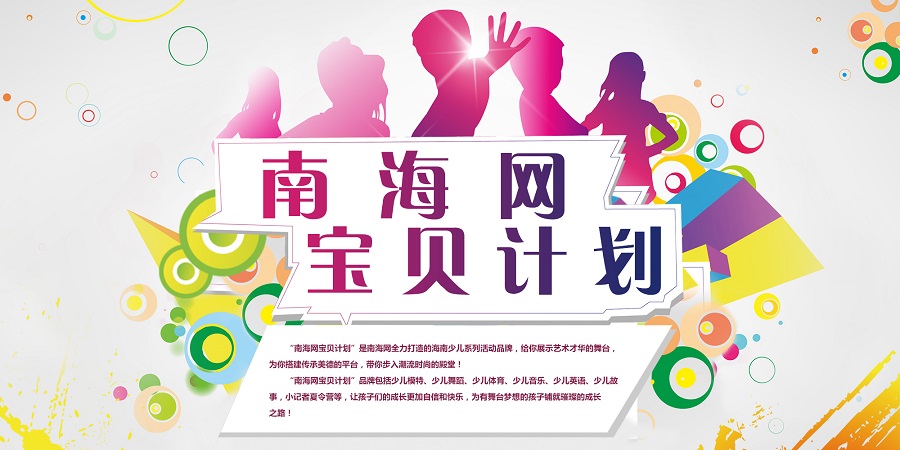 “南海網寶貝計劃”是由南海網著力打造的海南少兒系列活動品牌,其重新定義了少兒培訓“媒體+賽事+培訓”的新模式,品牌系列活動包括少兒模特、少兒舞蹈、少兒體育、少兒音樂、少兒英語、少兒故事、小記者夏令營等多個內容,大大促進了少兒系列活動的健康發展。
