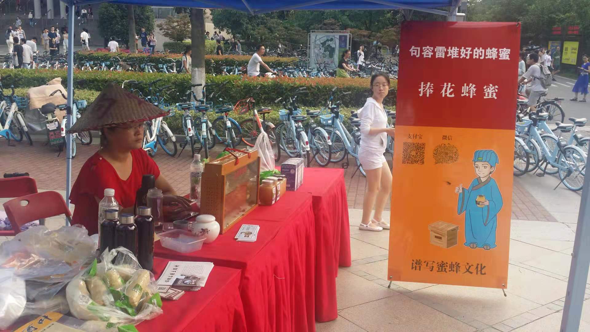 活動所在的舞臺兩邊,句容各式旅游商品一字展開,琳瑯滿目,吸引了眾多師生圍觀?;顒蝇F場除了大屏上向南大師生及現場人員播放對句容旅游宣傳片外,還專門進行了茅山、寶華山、赤山湖等推介,同時組織開展提問互動和抽獎環節,現場氣氛達到高潮。