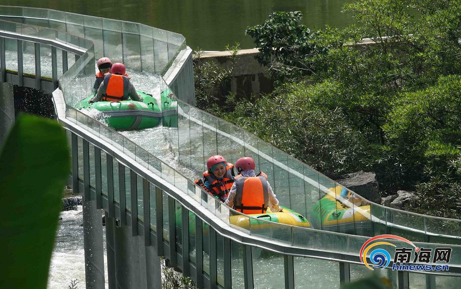在海南瓊中黎族苗族自治縣的瓊中峽漂流景點,精彩刺激的漂流項目受到游客的追捧,不少游客從海口、三亞趕到這里感受空中玻璃漂流的極致體驗。海報集團全媒體中心記者 陳元才 通訊員 王清山 林學健 攝