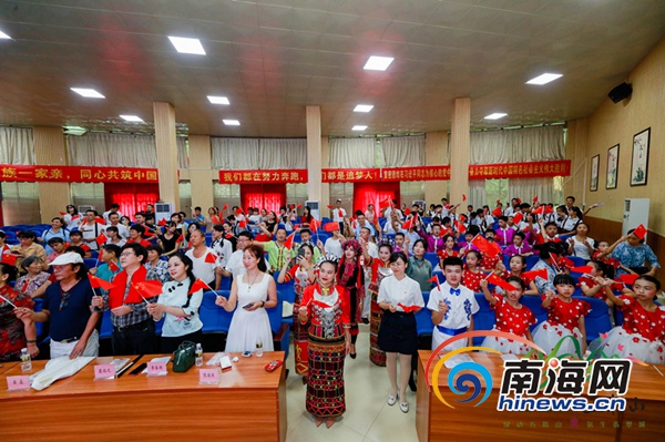 全體觀眾手執(zhí)紅旗同唱《我和我的祖國》。五指山市委宣傳部供圖