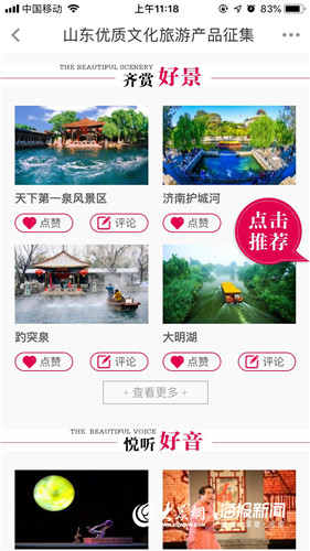 山東優(yōu)質文化旅游產品征集平臺由山東省文化和旅游廳指導,大眾網搭建,旨在為山東優(yōu)質文化旅游產品提供一個宣傳、推薦、展示的平臺,充分提煉和挖掘山東旅游產品的文化內涵。同時,通過網友點贊,推選出更能代表山東特色的文旅產品,作為山東優(yōu)質文旅產品的代表進行廣泛傳播。