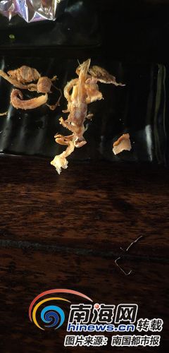 “這魷魚干里怎么會有訂書釘?也太不衛生了吧,難不成我第一口吃進肚子里的就有訂書釘?”王先生氣憤地說,當時他喊來服務員對此進行解釋,可服務員不愿叫餐吧老板前來處理此事,只表示可以更換一份魷魚干。