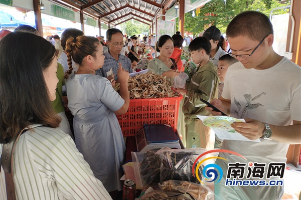 開幕式上互動(dòng)游戲精彩有趣,特色展區(qū)同樣看點(diǎn)不少。美食展區(qū)的竹筒飯、土窯雞、三色粽、陵水酸粉等為游客帶來(lái)味蕾的享受;扶貧集市上,保亭各鄉(xiāng)鎮(zhèn)以及電商協(xié)會(huì)帶來(lái)的雞鴨活禽、椰子油、百香果、蜂蜜等,則成了居家人士愛(ài)逛的地方。“平時(shí)都會(huì)特意托朋友在鄉(xiāng)下找正宗的蜂蜜和土雞,這次來(lái)保亭玩,剛好遇上這個(gè)活動(dòng),就趕緊逛一下買些農(nóng)家蜂蜜和土雞?!眮?lái)自??诘挠慰袜嵡殁f(shuō)道。
