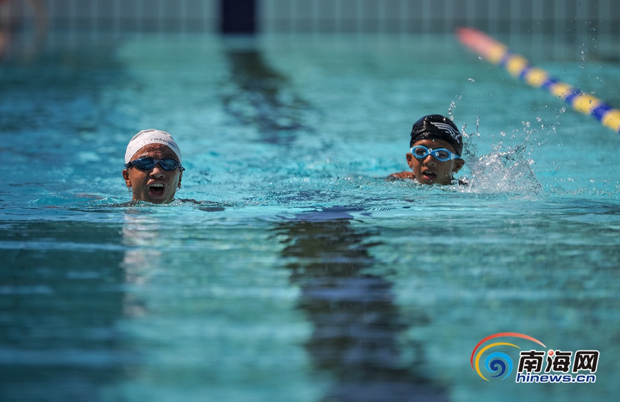 白沙文體中心游泳場內(nèi),市民享受游泳樂趣。海報(bào)集團(tuán)全媒體中心記者 袁琛 攝