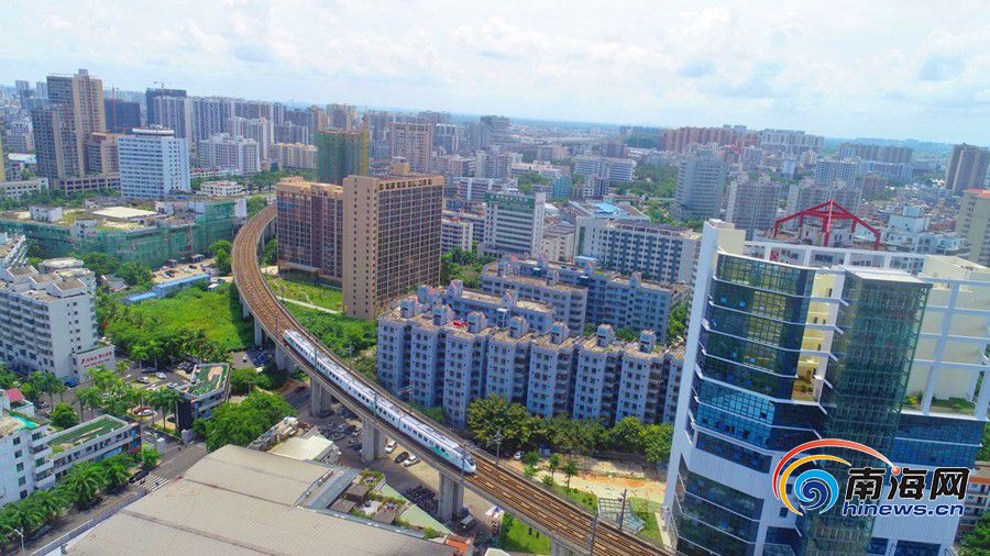 8月28日,一列市域列車經過海口市南海大道路段。海報集團全媒體中心記者 張茂 攝