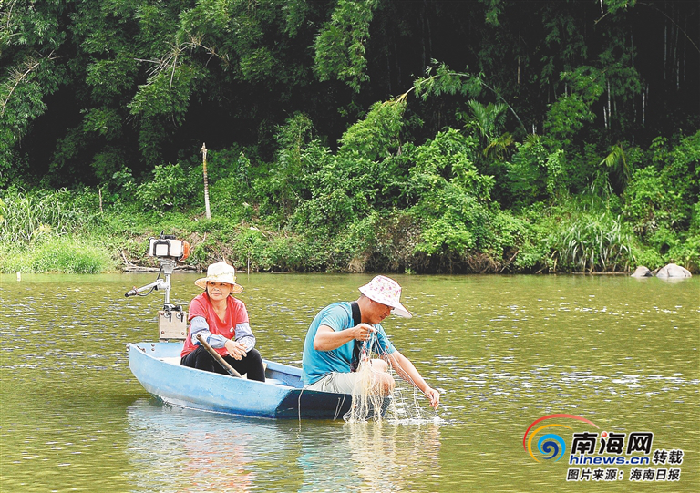 ?村民在南渡江澄邁段捕魚。