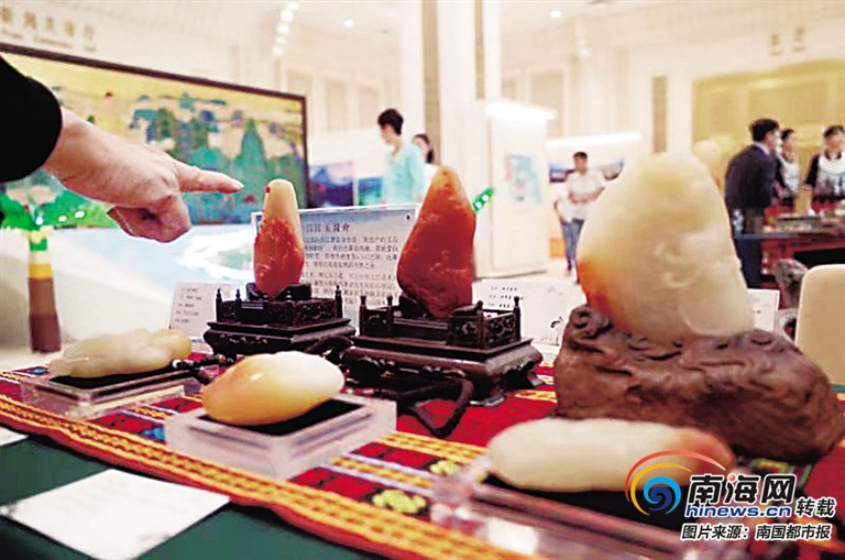 11件作品和原石與沉香、黎錦等一起呈現(xiàn)在國內外30家媒體、84名中外媒體記者面前。這是昌江首次在國家重大平臺上代表海南展示“美好新”的海南形象。