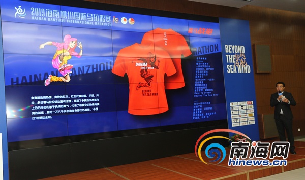 2019海南儋州國際馬拉松賽新聞發(fā)布會現(xiàn)場,介紹本屆比賽的參賽服裝。南海網(wǎng)記者陳望 攝
