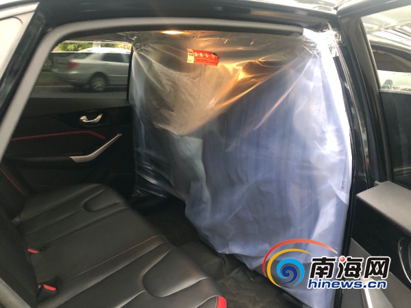 網(wǎng)約車恢復(fù)運(yùn)營(yíng)后,許多海口和三亞的網(wǎng)約車有了新變化,車輛前排和后座之間多了一層防護(hù)膜。南海網(wǎng)記者 周靜泊 攝