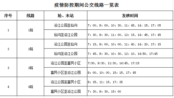 一、公交車:恢復1路、2路、3路、4路共四條線路運營(具體班次見附件1)。