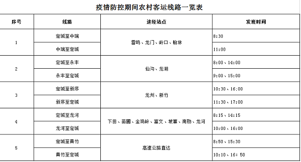 2、疫情防控期間農村客運線路一覽表