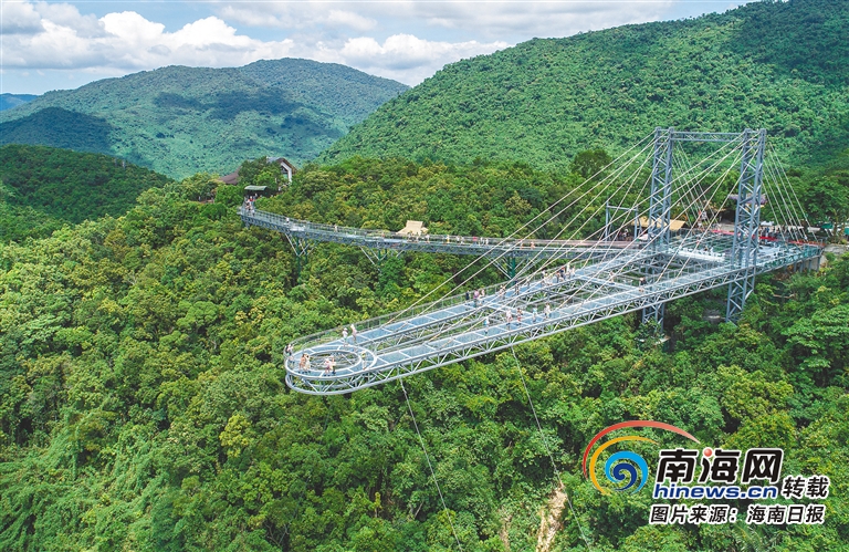 海南呀諾達雨林文化旅游區的玻璃觀景平臺上,游客在觀賞熱帶雨林美景。武昊 攝