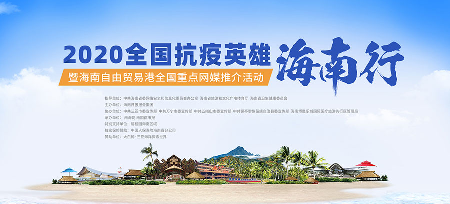 “天然氧吧 健康海南”——2020全國抗疫英雄海南行暨海南自由貿易港全國重點網媒推介活動從7月25日持續至7月31日,7天時間,從北到南,來自全國各地的抗疫英雄和重點網絡媒體的記者編輯們將深入瓊海、萬寧、五指山、保亭、三亞等市縣,實地感受海南濱海度假、溫泉康養、美麗鄉村、熱帶雨林等旅游產品,感受海南加快建設自由貿易港的勃勃生機,感受海南建設生態島、健康島、長壽島的決心和信心。