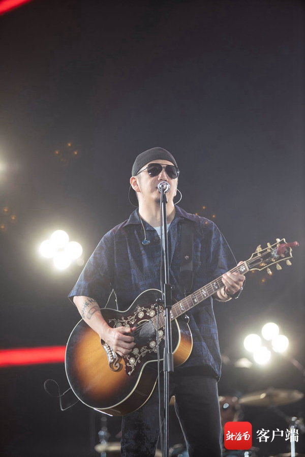隨著音樂節(jié)進(jìn)入下半段時間,一陣鼓點(diǎn)敲起,嘉賓郝云火熱開唱。連續(xù)帶來兩首2010年專輯中的經(jīng)典曲目《突然想到理想這個詞》《結(jié)了》,郝云用他特有的輕松談?wù)撝P(guān)于理想這個詞,讓現(xiàn)場沉浸在青春洋溢的氛圍中。隨后《逃跑的木偶》《去大理》等耳熟能詳?shù)慕鹎沧尙F(xiàn)場氛圍持續(xù)熱烈。演出過程中,極具現(xiàn)場魅力的郝云還燈與光師玩起了即興效果的配合:“來燈光師配合我一下,把這些燈,星星點(diǎn)點(diǎn)的燈都關(guān)了,就留頂光,一個頂光,然后等我們樂隊(duì)起音,燈光再一起起……試一下,是不是格調(diào)一下就高了!”惹全場爆笑。最后,一首壓軸金曲當(dāng)屬《活著》,讓郝云與樂隊(duì)老師們徹底玩開了,持續(xù)了十分鐘,各種solo的炫技將氣氛烘托到最高點(diǎn)。