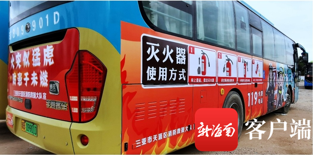 在三亞全市66條公交線路中選取9路、54路、58路等3條不同線路的公交車,在車體上張貼消防公益宣傳海報以及消防宣傳警示標語。3條公交線路共途徑101個公交站點,輻射范圍廣,形成了一座移動式消防宣傳服務站。