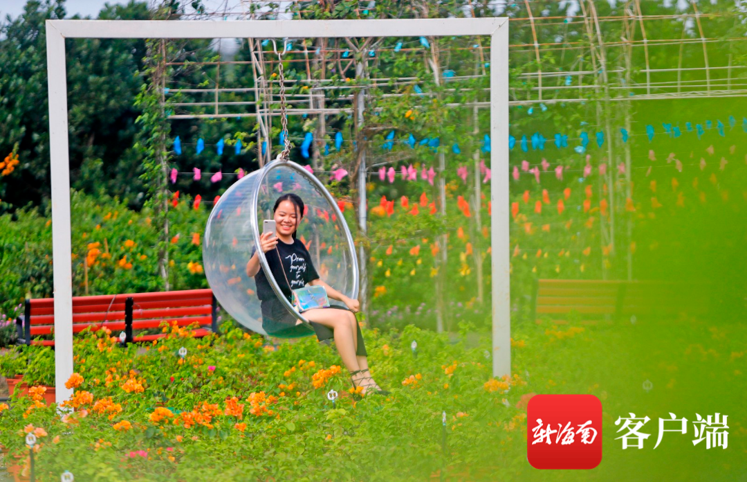 11月22日,記者來(lái)到海口三角梅共享農(nóng)莊,發(fā)現(xiàn)園內(nèi)綠意盎然,百花齊放,鮮紅欲滴的三角梅隨風(fēng)搖曳,不少市民游客在觀景臺(tái)散步、拍照。