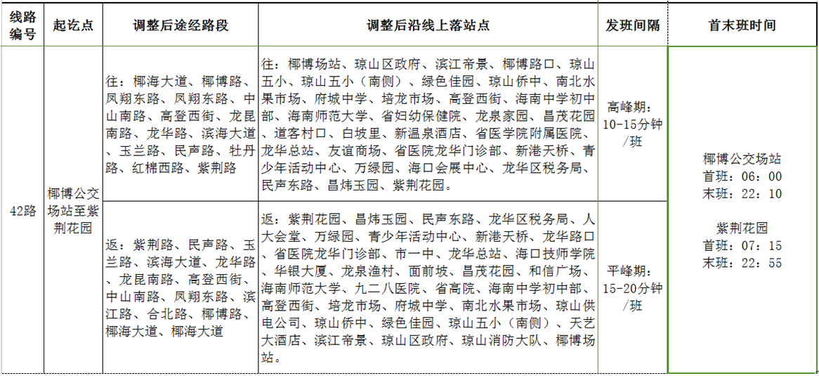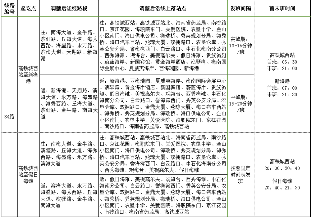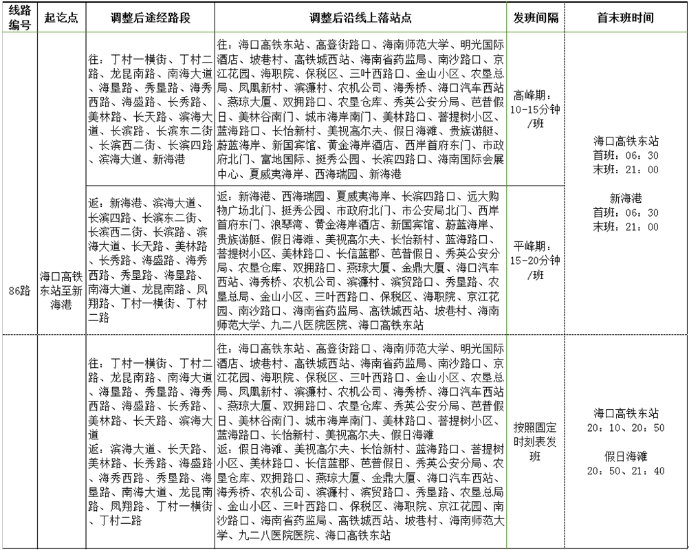 取消站點:海職院、保稅區(qū)、銘豪廣場、丘海路口、有線海南基地。