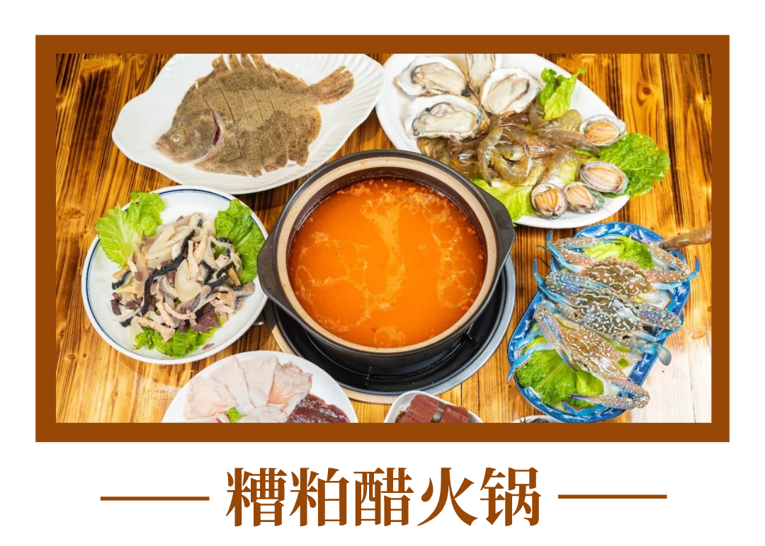 酸甜微辣的湯底釋放著獨(dú)特的魅力,將準(zhǔn)備好的各類海鮮和蔬菜食材放進(jìn)糟粕醋里,食材吸飽了酸甜微辣的湯汁,能讓你頓時(shí)胃口大開(kāi)。