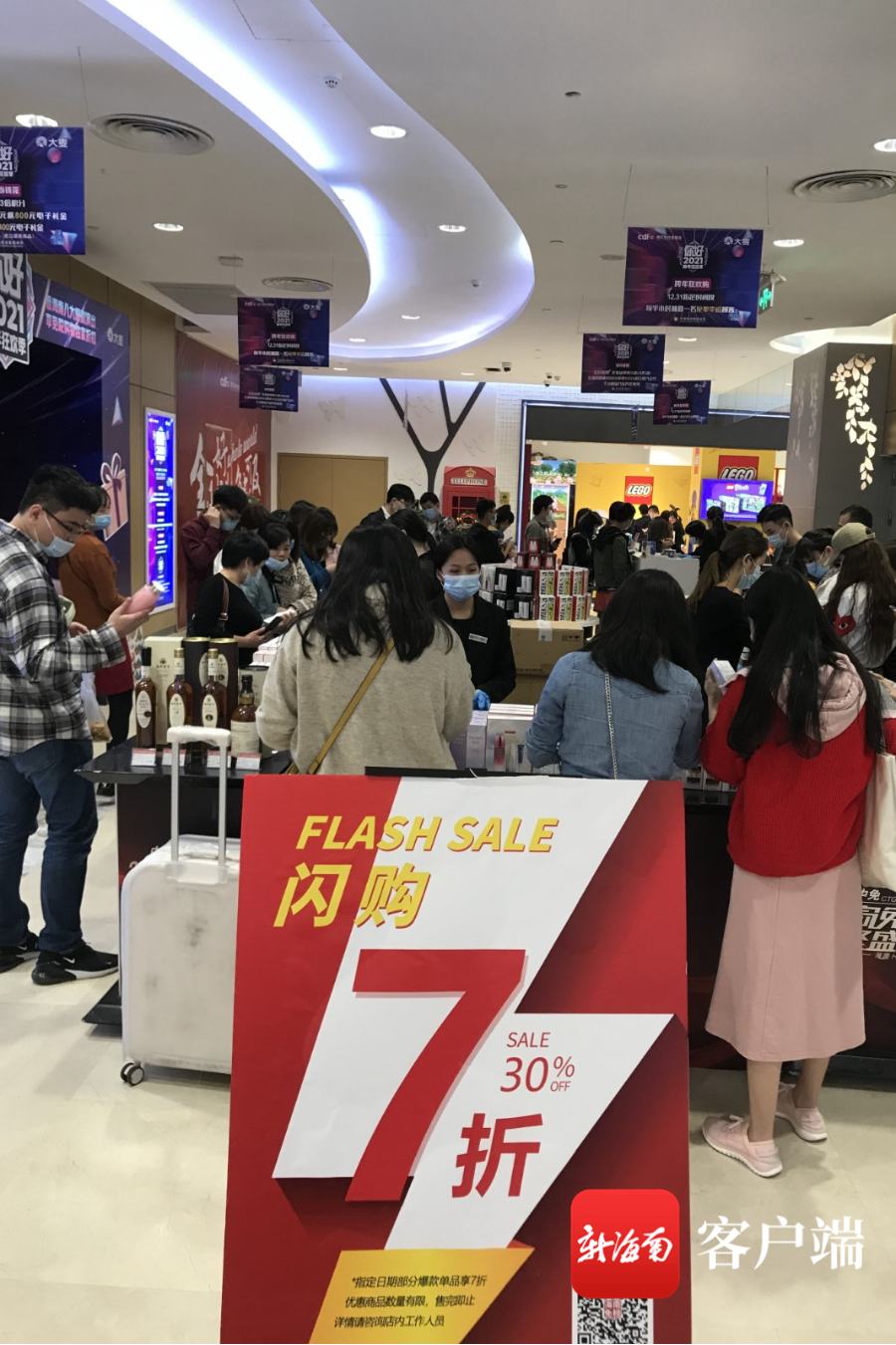 新海南客戶端、南海網(wǎng)、南國(guó)都市報(bào)12月28日消息(記者 陳衛(wèi)東)2020年即將過(guò)去,海口商家紛紛推出跨年促銷活動(dòng),12月27日,記者在海口市區(qū)日月廣場(chǎng)免稅店看到,店內(nèi)人氣火爆,前來(lái)購(gòu)物的市民游客在不少柜臺(tái)前排起了長(zhǎng)隊(duì)。
