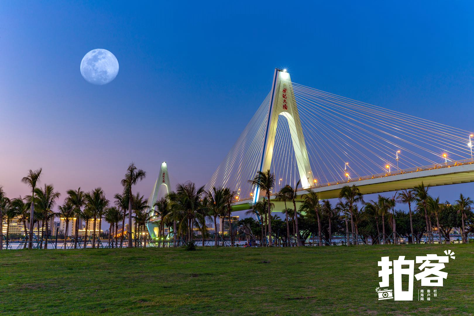 夕陽西下,月兒升起,在炎熱立夏的今天,天空也透藍。南海網客戶端專欄攝影師 羅長英 攝