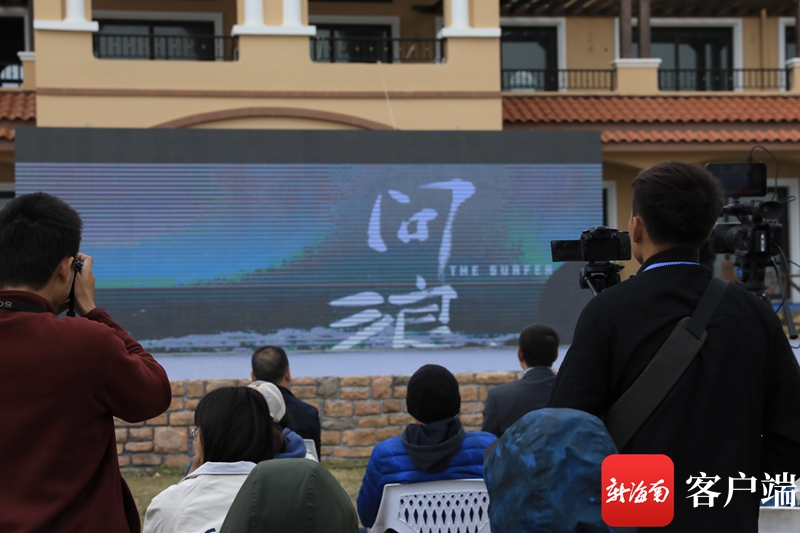 領導及嘉賓共同觀賞講述12歲男孩逐沖浪之夢的微電影《問浪》。