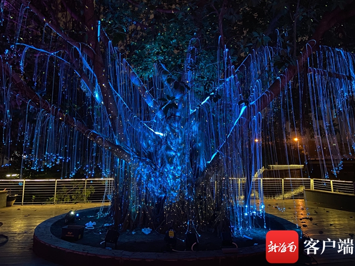 1月31日晚,記者在五公祠園區(qū)看見,亮燈一刻,全園燈光照亮了瓊臺福地的夜空,也照亮了五公祠內(nèi)古色古香的文物古跡。五彩的燈光交織變換,水霧繚繞,猶若置身仙境。漫步在園區(qū)小路,感受清風(fēng)徐來,看湖光相映、橋影波光,斑斕倒影搖曳水中,在光影中重溫歷史文化,在行游中享受探索之樂。古老的五公祠,在月夜下煥發(fā)著新生活力。