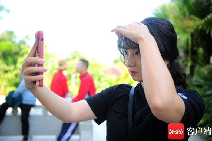 2月13日,市民在三亞臨春嶺森林公園拍照打卡。記者 沙曉峰攝