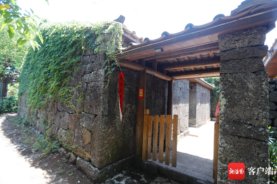 古老的火山巖石凝固了百年時光,圍墻內(nèi)別有洞天。記者 汪承賢 攝