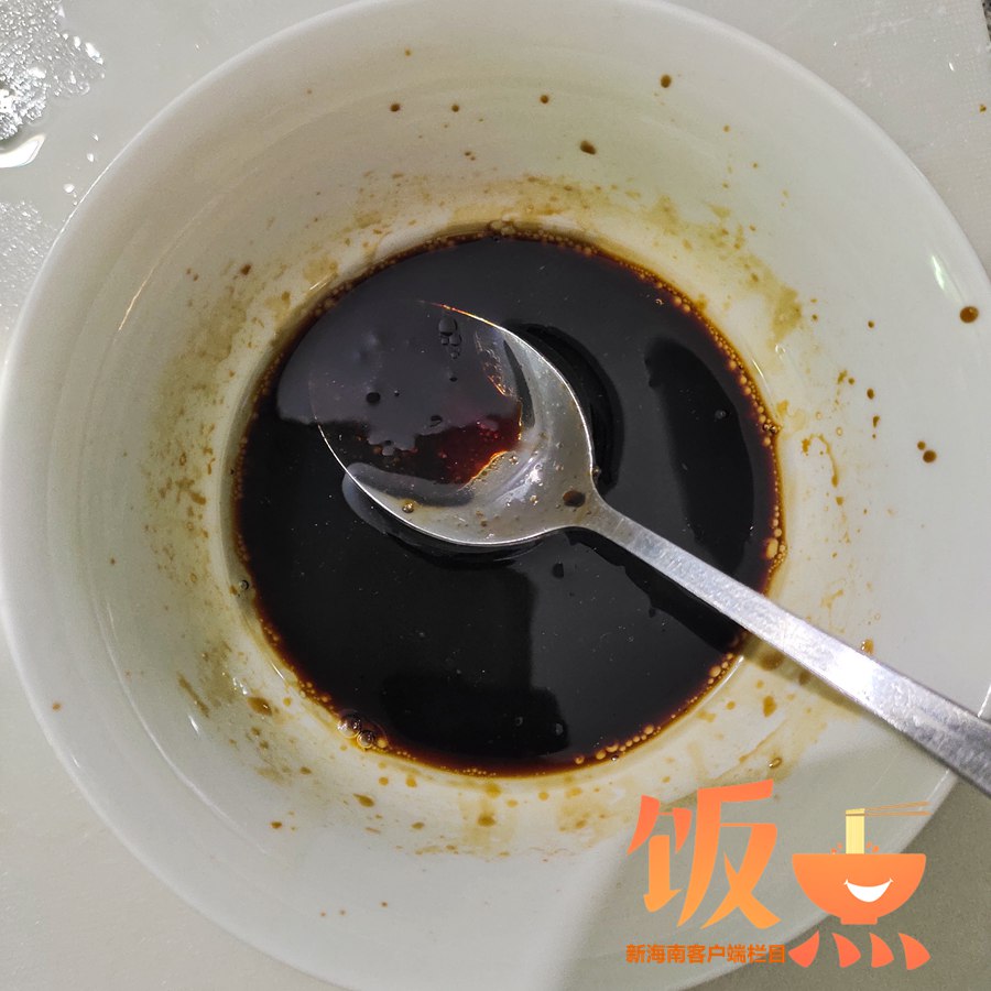 4、再調(diào)一個(gè)料汁:3勺生抽、兩勺醋、一小勺蠔油、一小勺芝麻油、適量鹽、適量糖